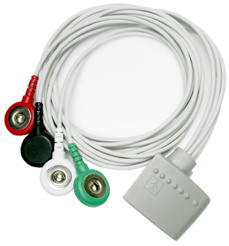 Descrição O cabo de paciente conecta os 4 eletrodos instalados no paciente à entrada do Holter do CardioMapa, permitindo a gravação dos sinais eletrocardiográficos.